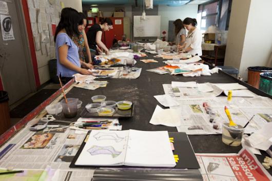 The Textiles Print Worskop is where students design and develop textiles for garment construction, furnishing and other design applications.